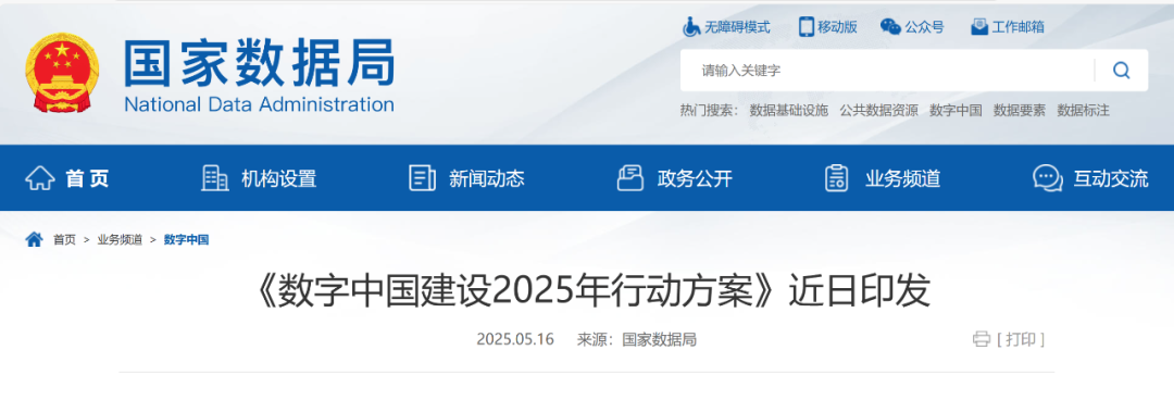 2. 国家数据局印发《数字中国建设2025年行动方案》